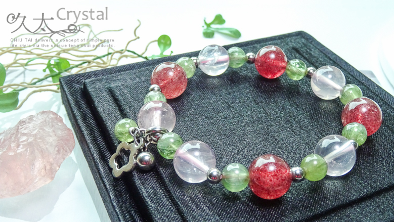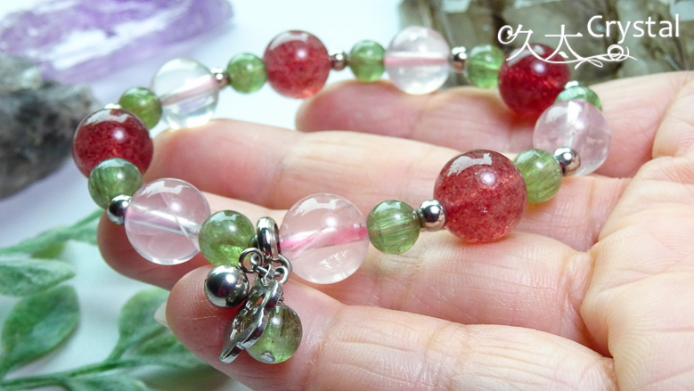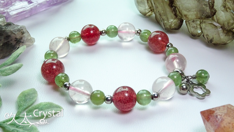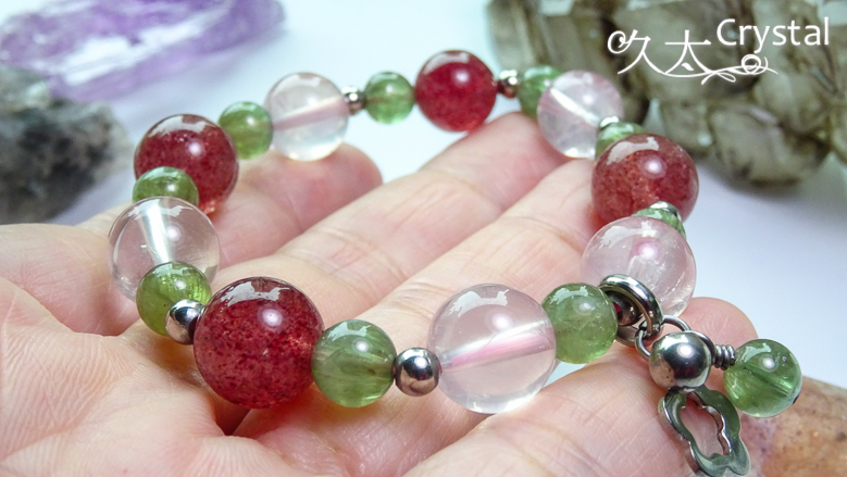 象徵慈愛與女性化氣質的粉紅色,是一 種能讓人心中充滿愛與溫柔的顏色。可以帶給人永遠的魅力並具有培養愛情的力量。不但能增幅愛情中獲得的喜悅,也能治癒人們在感情所受的創傷與心痛。對想要提高女性魅力、或想讓自己變的年輕的時候,也很推薦配戴粉紅色的能量石。